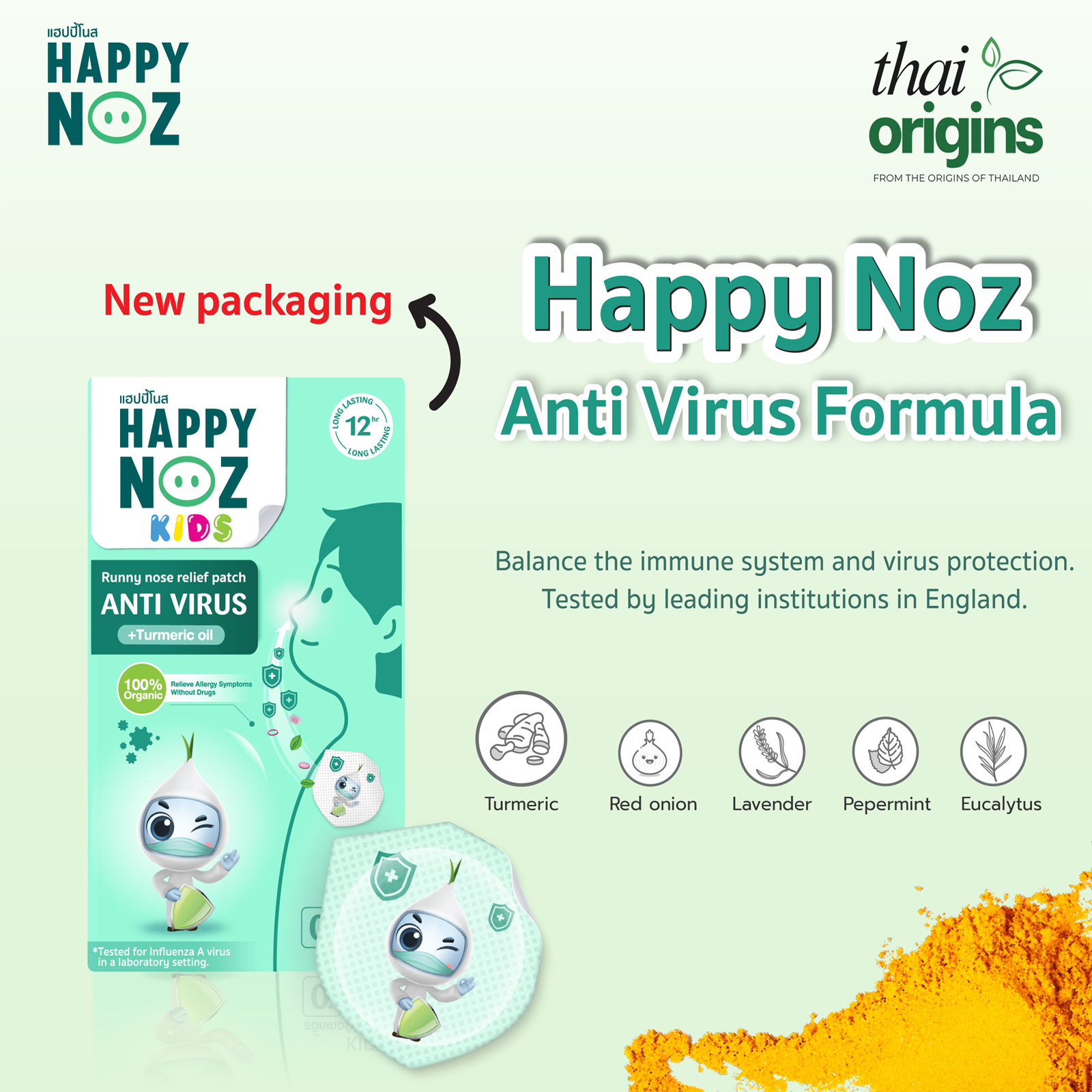 HAPPY NOZ KIDS — ANTI-VIRUS FORMULA + Turmeric Oil | 100% Organic | Drug Free | USDA Certified | 12-Hour Relief